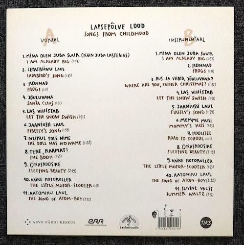 2015年にエストニア公共放送とアルヴォ・ペルト・センターが共同企画したアルバムの初LP化。ペルトが作曲した曲を、エストニアの児童と若い音楽家達に委ねたもので、指導には(大人の)音楽家が介入していますが、演奏は全て児童と若き音楽家達によるもの。A面はヴォーカル曲、B面はA面と同じ曲の器楽編曲ヴァージョンを収録。若年者のために作曲されているため演奏難易度の高いものはありませんが、荘厳なECM諸作と異なる次元での、素晴らしい音「楽」の魔法が生まれています(特にB面)。エストニア語と英語併記のゴツいインサート付きで、掲載された制作写真に見るペルトの嬉しそうな顔が印象的かつ象徴的。ペルトのファンのみならず児童音楽好きもマスト!